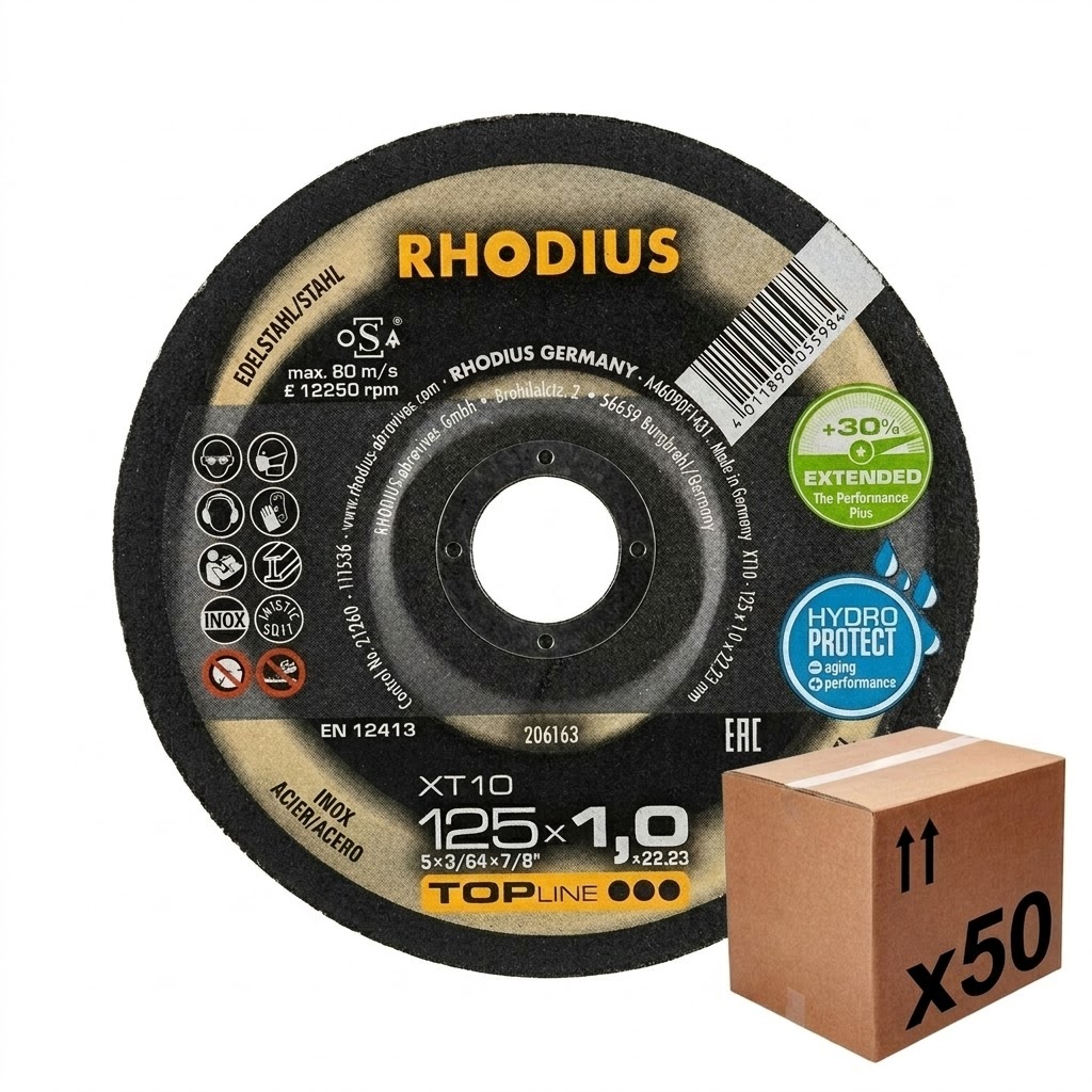 DISCO CORTE INOX 125 x 1mm RHODIUS TOP LINE XT10 50 UNIDADES