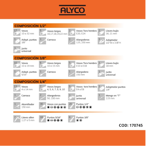 JG CH.CAIXA 1/2+3/8+1/4 171P ALYC ORANGE